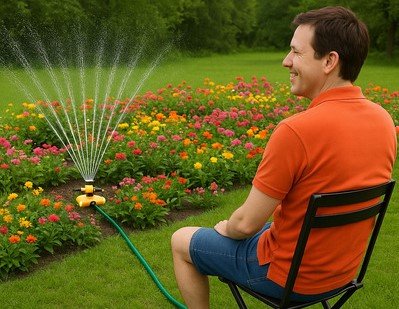 💧 Semprot merata ke seluruh sudut taman🔄 Bisa berputar otomatis💤 Kamu bisa santai, tanaman tetap segar!