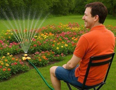 💧 Semprot merata ke seluruh sudut taman🔄 Bisa berputar otomatis💤 Kamu bisa santai, tanaman tetap segar!