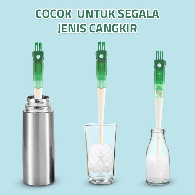 Botol minum, termos, atau gelas kecil sering masih kotor meski sudah dicuci? 💢 Sikat biasa nggak masuk. 💢 Noda susah hilang. 💢 Ribet ganti-ganti alat.