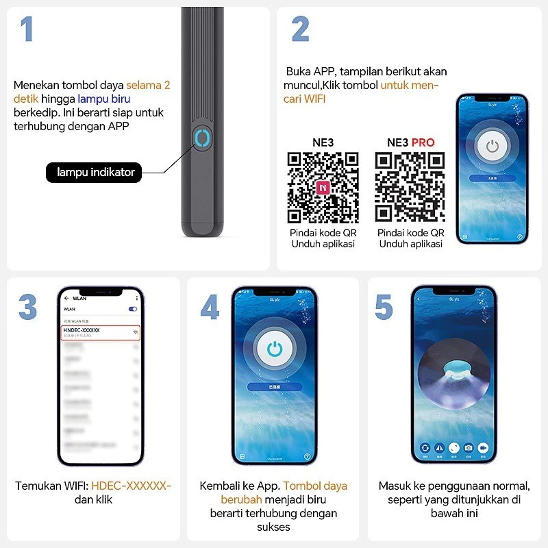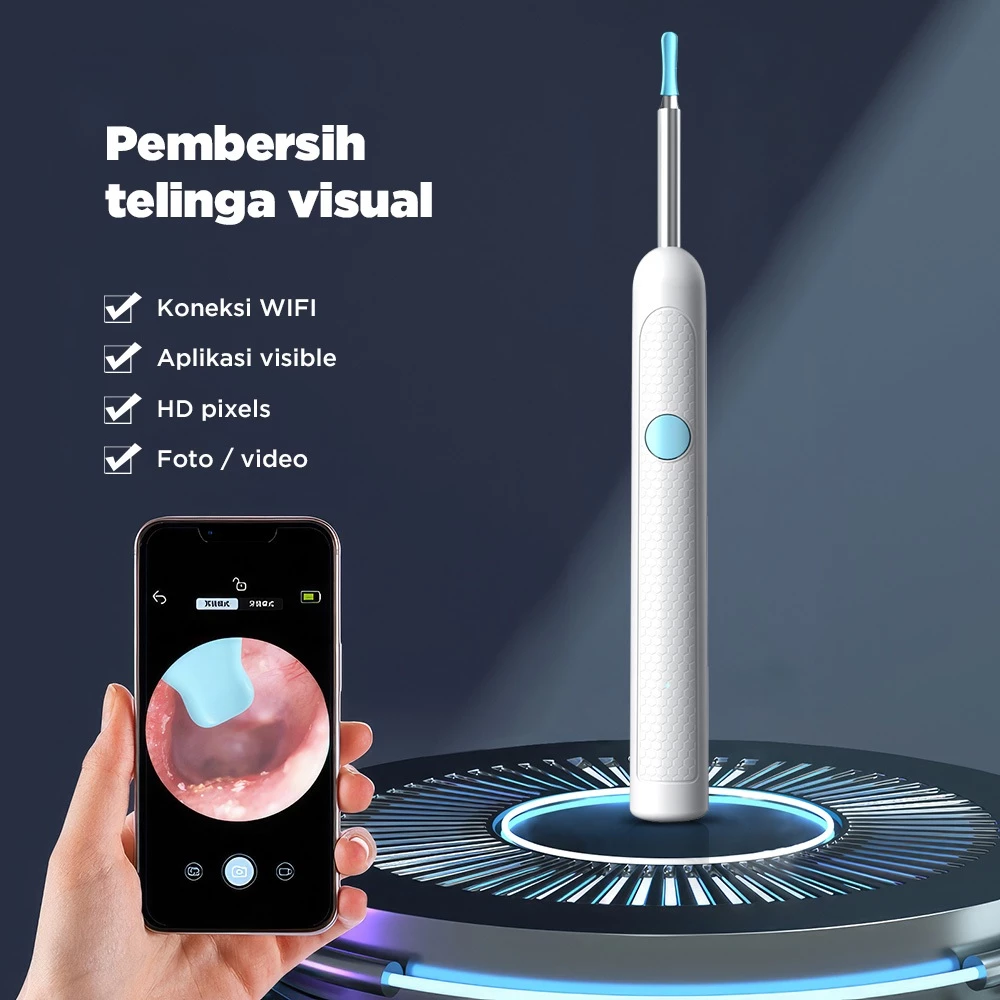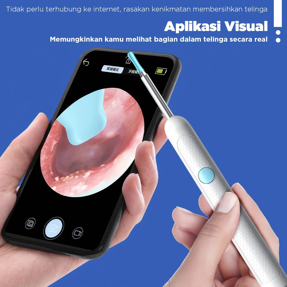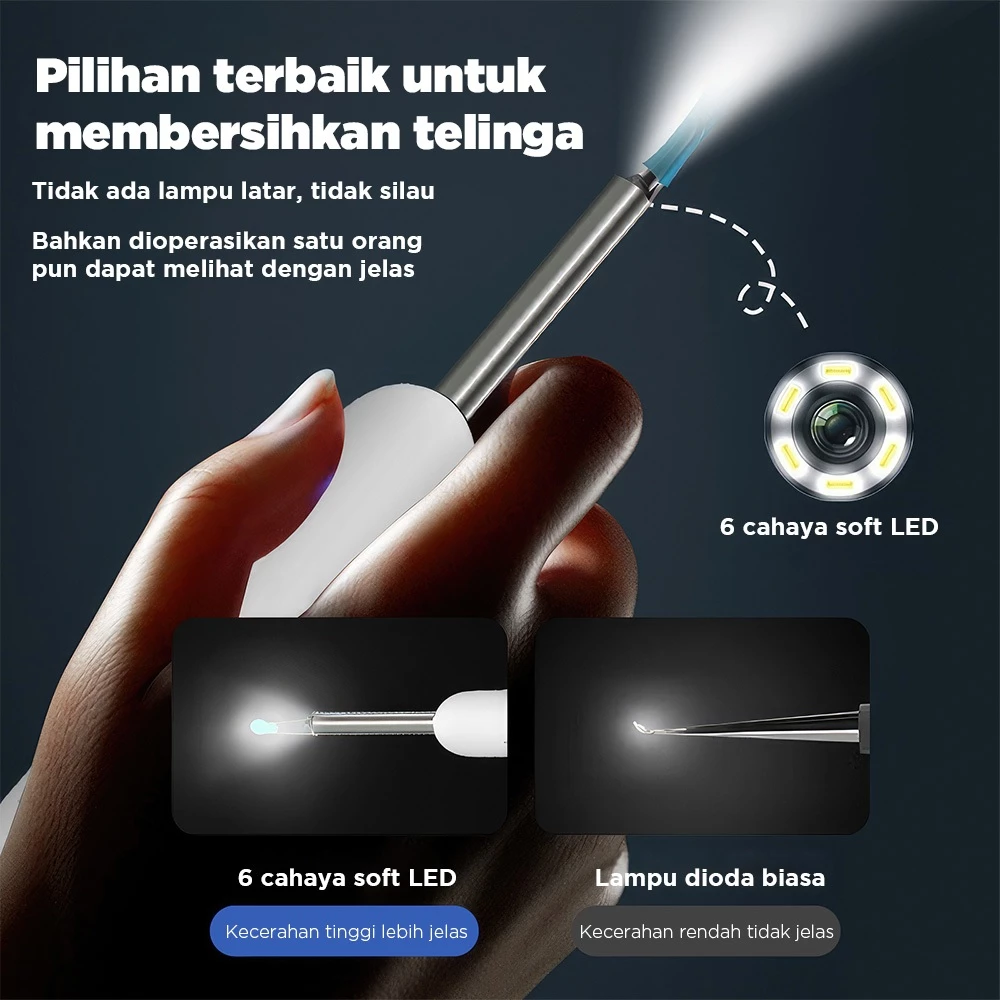 Dilengkapi dengan Kamera dan lampu LED sehingga anda dapat melihat kotoran dalam telinga dan dapat membersihkannya dengan bersih